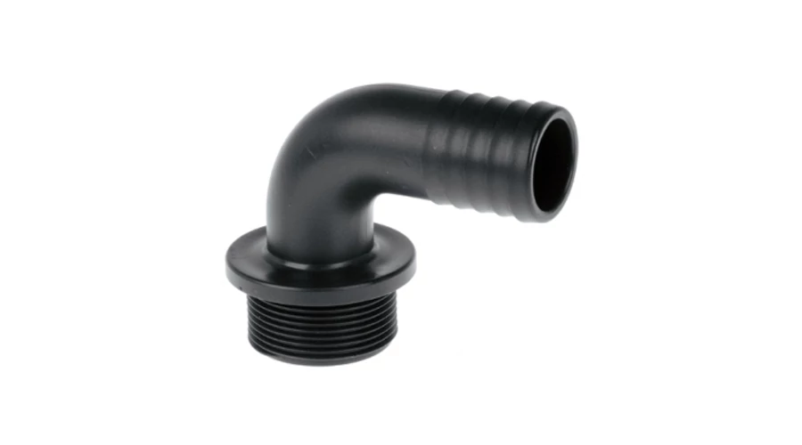A külső menetes 90°-os tömlővég átmenetet képez a tömlő és a belső menetes alkatrészek (pl. elágazások, átalakítók) között. A permetezőrendszerekhez tervezett műanyag fittingek meneteit szinte minden esetben érdemes tömíteni (pl. teflonszalaggal vagy tömítőzsinórral), különös figyelmet fordítva a nyomás alatt lévő és folyadékba merülő elemekre.