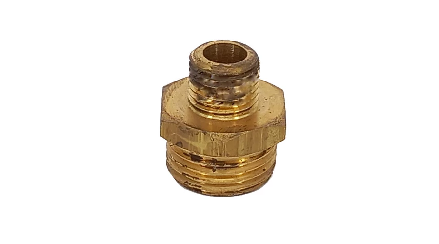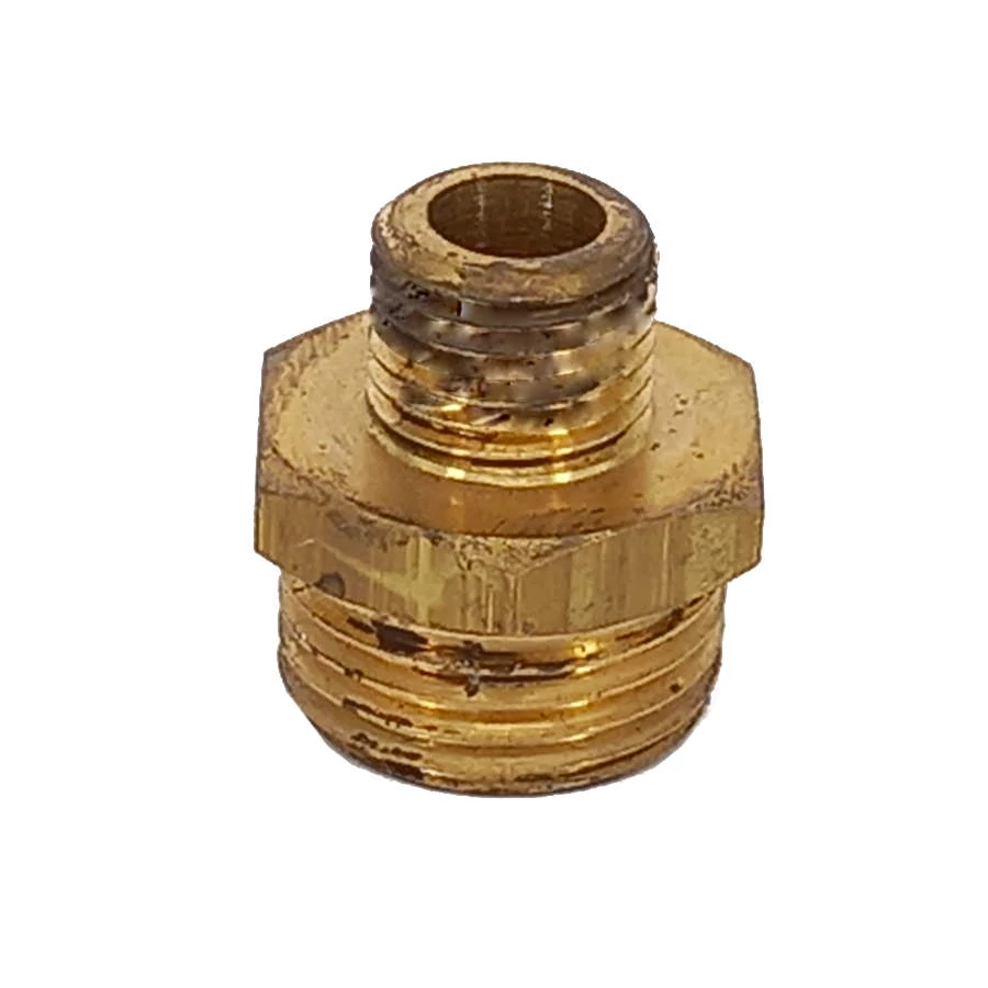 Egyenes, külső menetes szűkítő közcsavar permetezőgéphez és egyéb folyadékszállító rendszerekhez. Anyag: Réz. Méret: 1/4"x1/2"