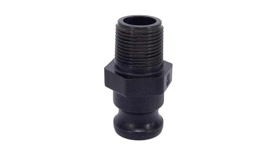 Fekete műanyag kamlok 1 colos külső menetes csatlakozócsap.