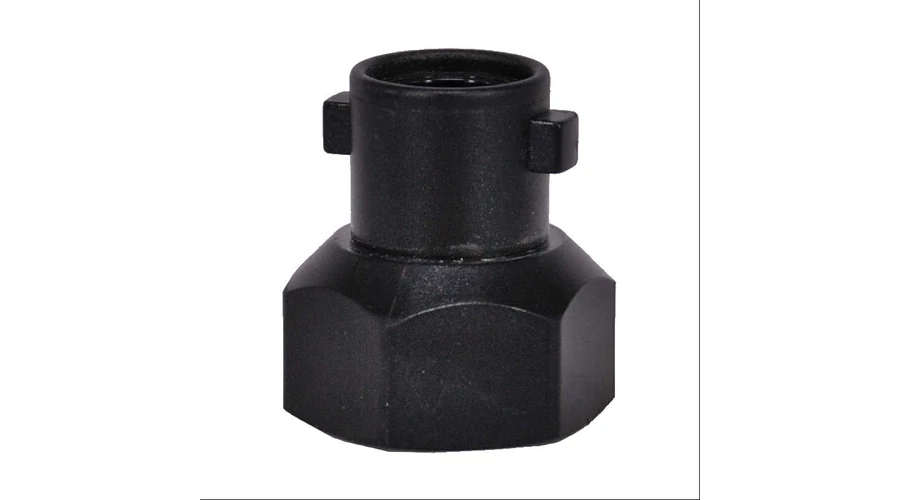 3/4 colos fekete műanyag bajonett adapter, mely egy BSP profilú külső menetes permetező alkatrészt átalakít bajonettzáras csatlakozásúra.