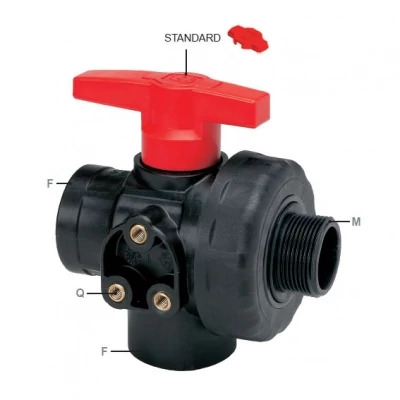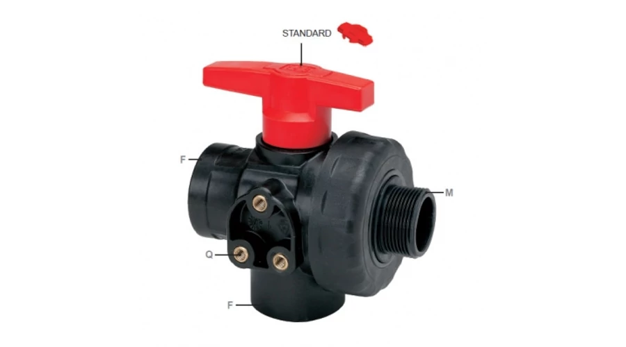 Az üvegszál erősítésű polipropilén (PP) alapanyagú három állású, középen elzáró golyóscsap szinte minden permetezőrendszerben helyet kap. A tartály elé vagy a visszafolyó ágba szerelve irányíthatjuk a folyadékáramot.