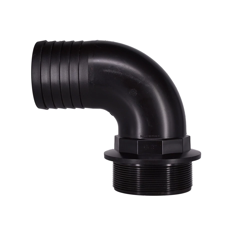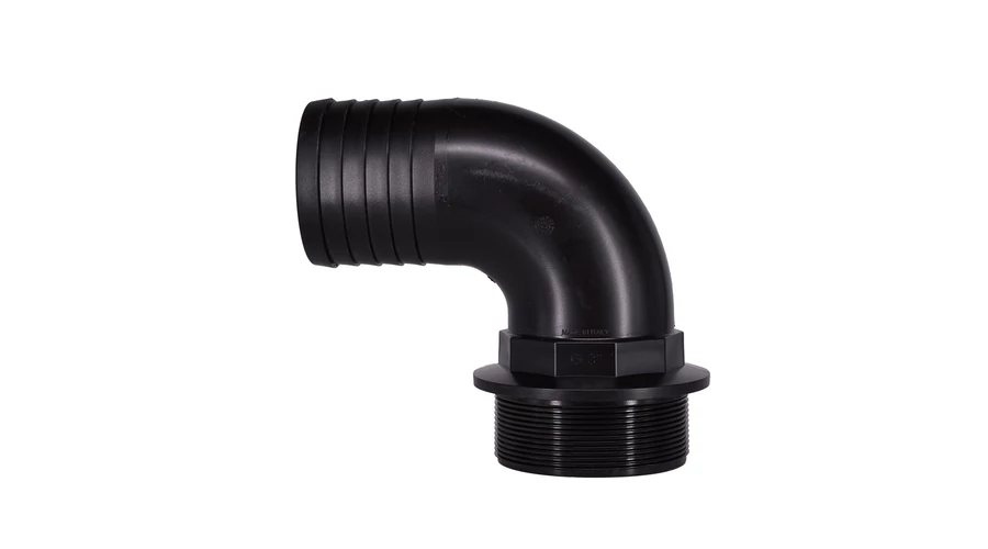 A külső menetes 90°-os tömlővég átmenetet képez a tömlő és a belső menetes alkatrészek (pl. elágazások, átalakítók) között. A permetezőrendszerekhez tervezett műanyag fittingek meneteit szinte minden esetben érdemes tömíteni (pl. teflonszalaggal vagy tömítőzsinórral), különös figyelmet fordítva a nyomás alatt lévő és folyadékba merülő elemekre.