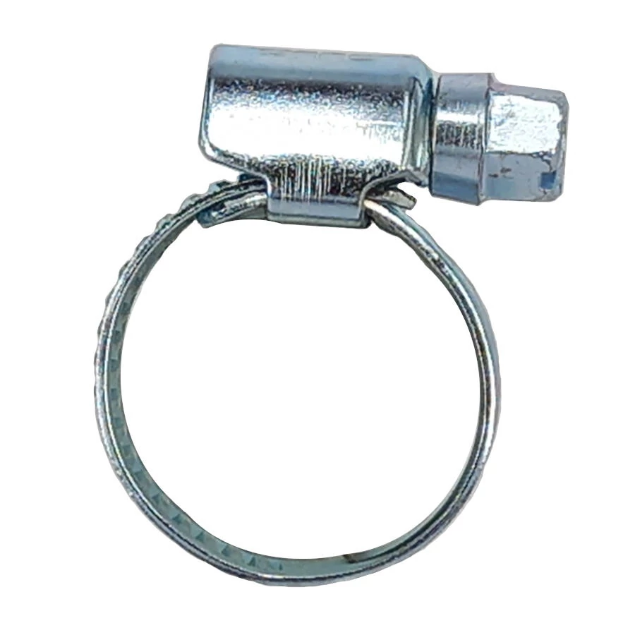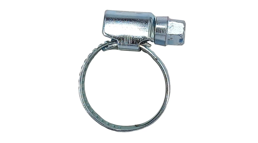 Galvanizált acélból készült csőszorító bilincs csiga rendszerű szorítószerkezettel 10-16mm külső átmérőjű tömlők rögzítéséhez.